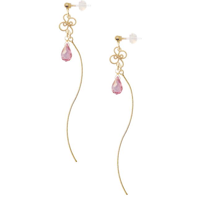 天然石ピンクトパーズ ドロップを使い、緩やかなウェーブのかかった長めの華奢なラインに仕上げました。