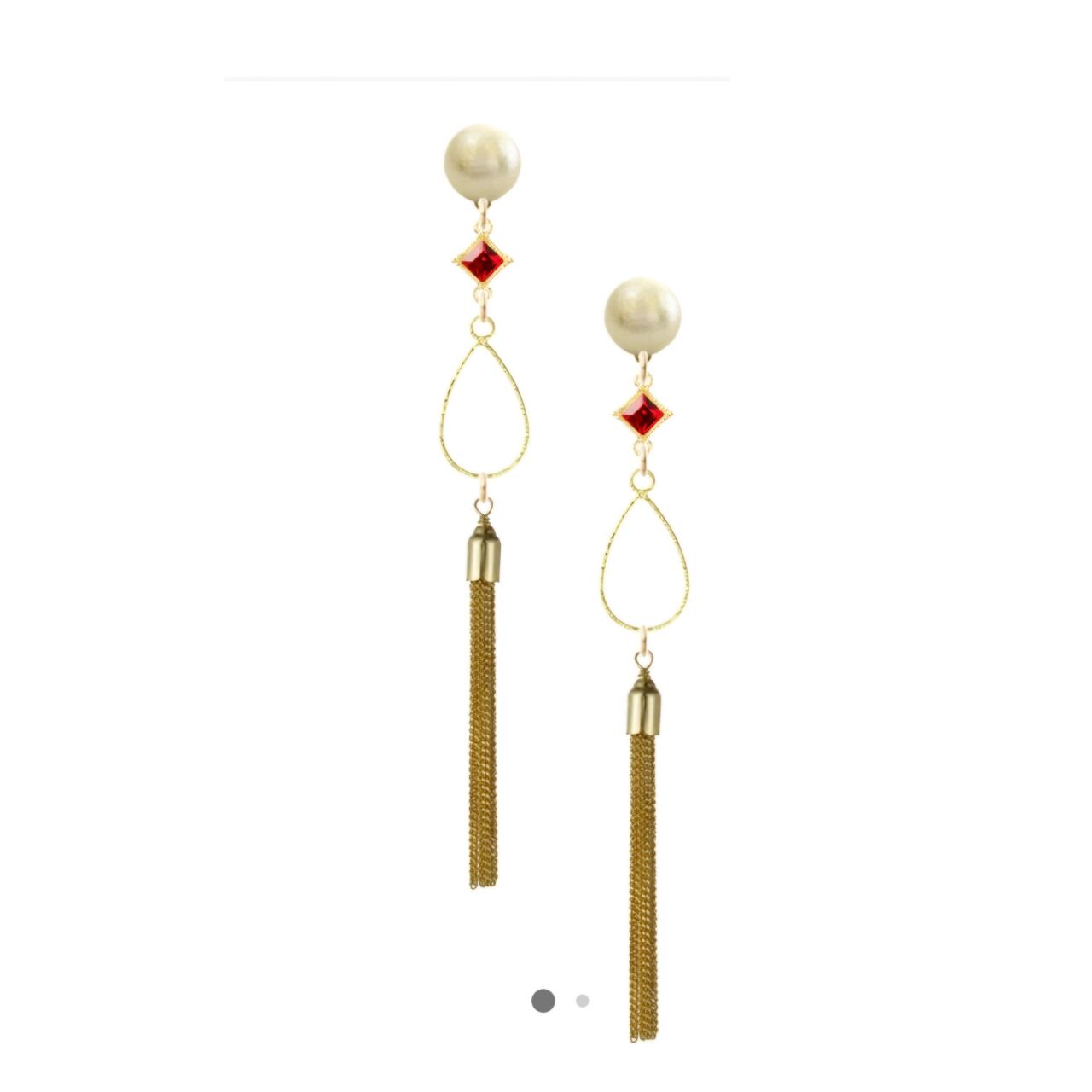 赤いスクエア型のスワロフスキーをタッセルに合わせました。揺れるチェーンが華やかさを演出しています。