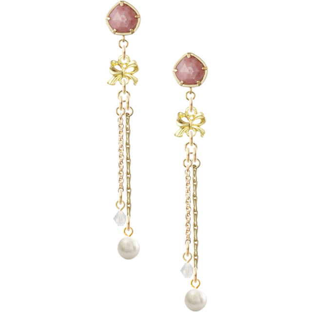 アーゲートピアスにスワロフスキーホワイトオパール、コットンパール、アクセントにリボンを合わせました。上品でエレガントな雰囲気を演出しています。
